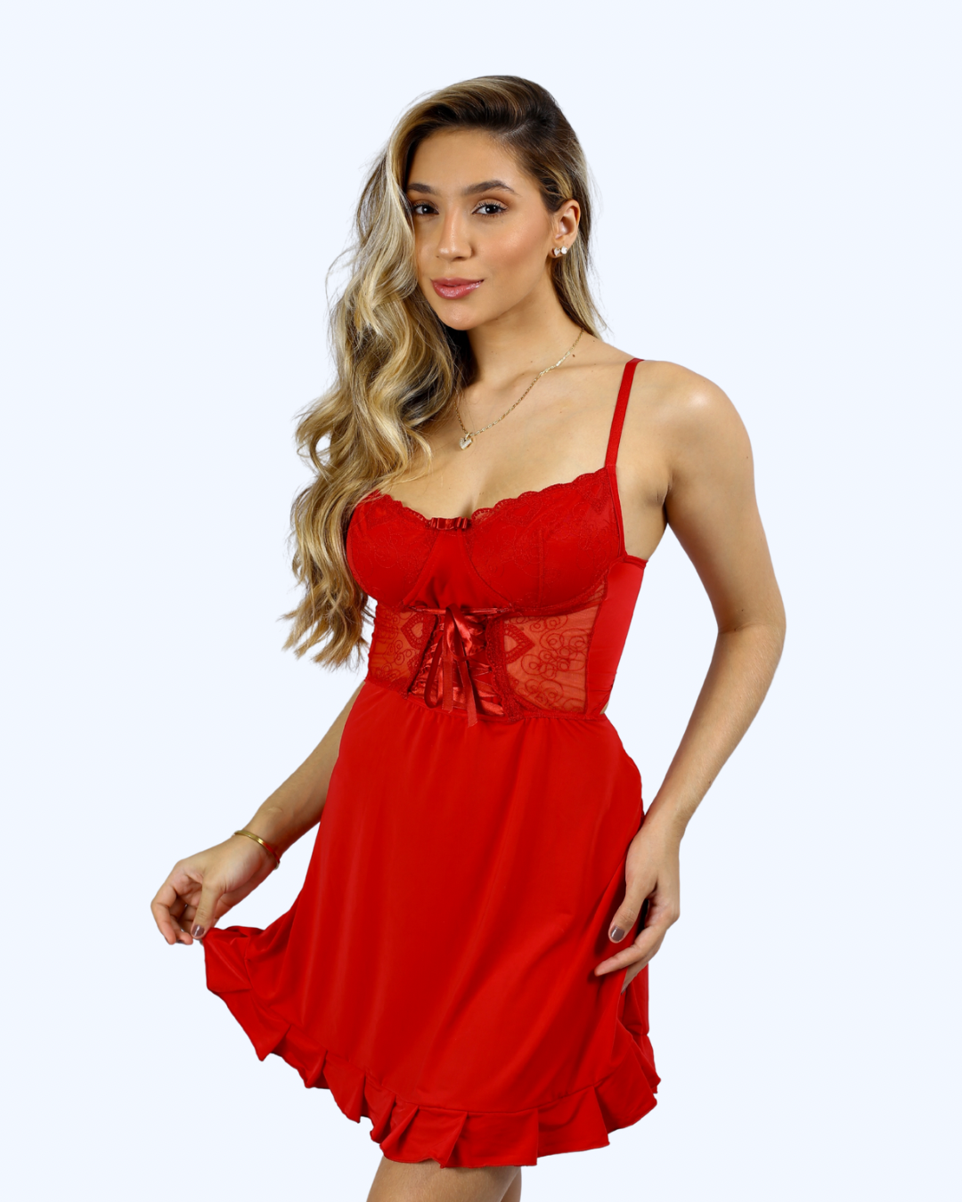 Camisola Desejo, em tule e renda - Vermelho - GANHE A CALCINHA DE PRESENTE