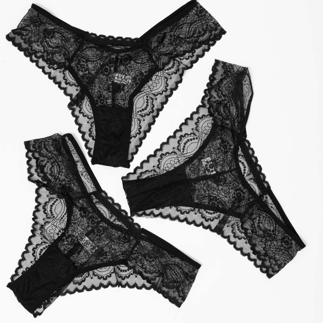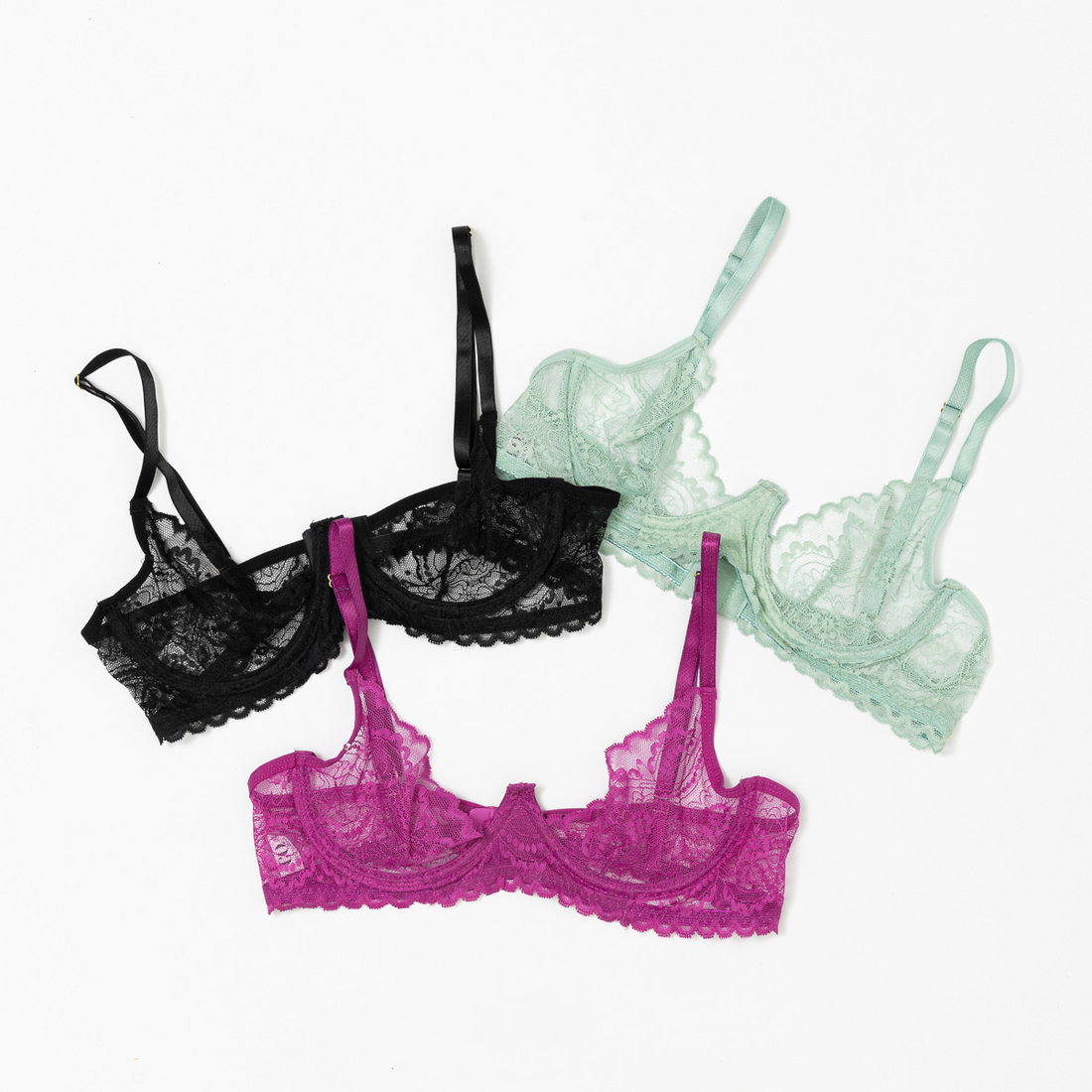 Conjunto de lingerie Dark, em renda, sem bojo, com aro de sustentação