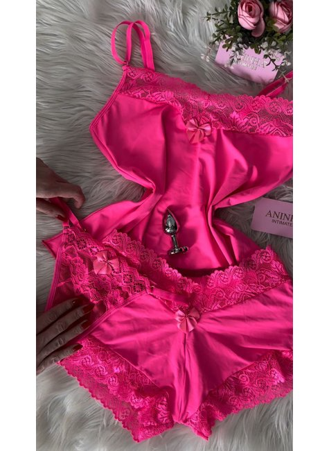 KIT Baby Doll + Calcinha + Plug - Rosa Neon