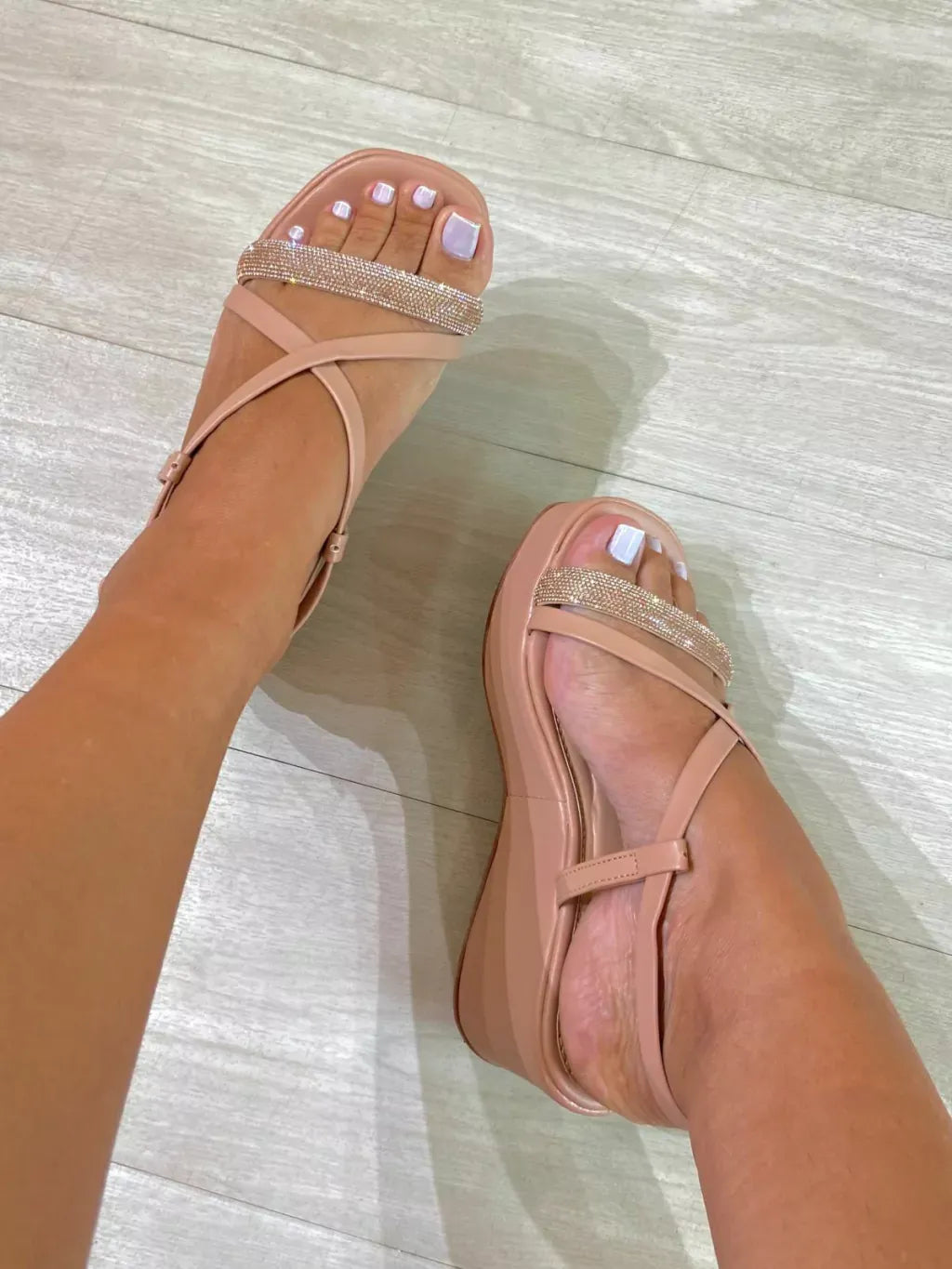 Transforme suas caminhadas em desfiles de moda com a Sandália Anabela Isabel. Perfeita para quem busca elegância sem abrir mão do conforto!