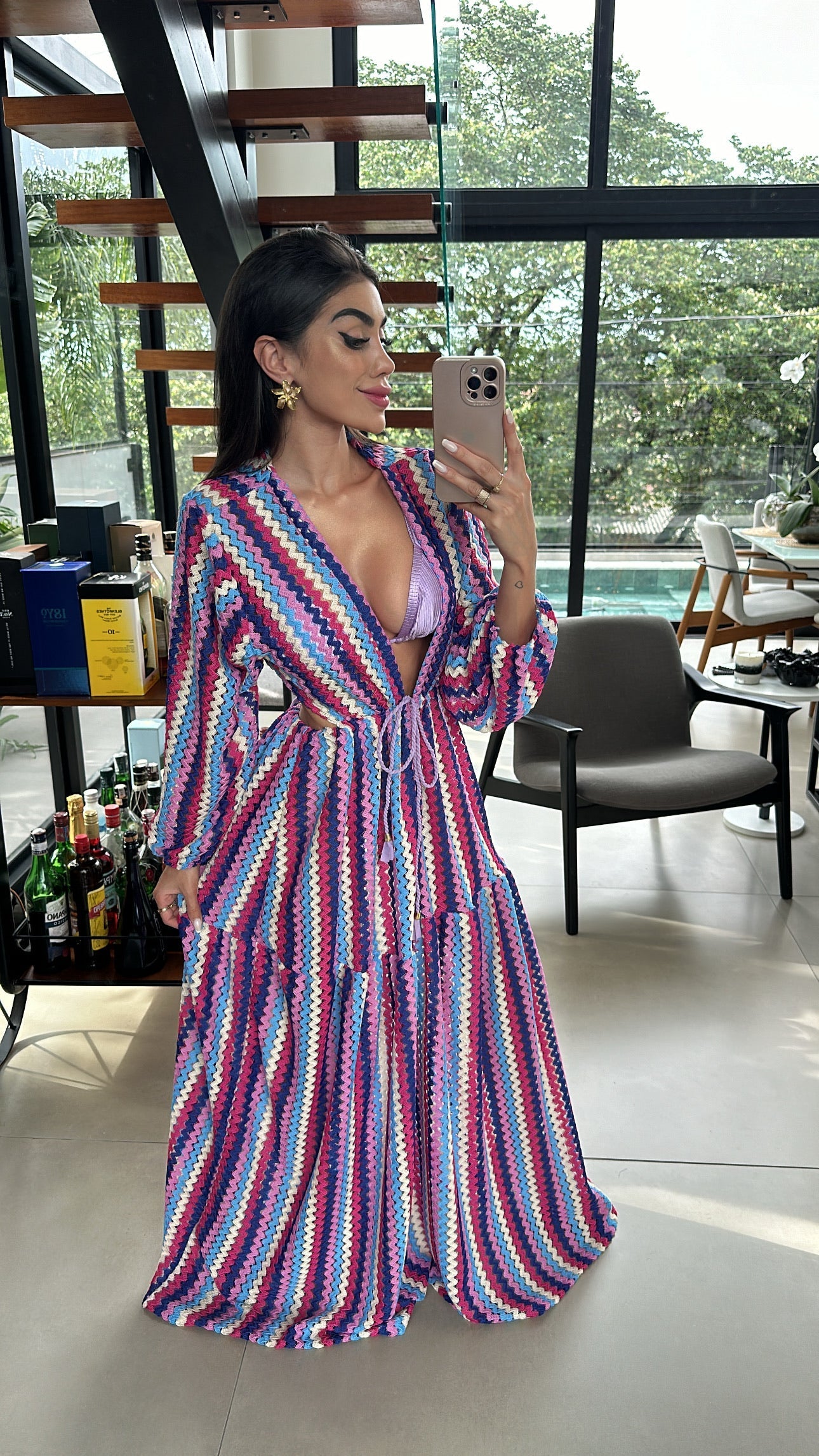 Desenvolvido em tecido com alta tecnologia e conforto, com proteção solar UV+50. Inspirado pelas produções estilosas de musas famosas, com fino acabamento, costura invisível e forro duplo em poliamida trazendo maior conforto. Ornamentos anti-alérgicos proporcionando maior cuidado à pele. Contém ouro na composição do banho das peças, produto fabricado com fibra poliamida (mais “geladinha” ) trazendo sensação de “frescor” e conforto durante o uso.