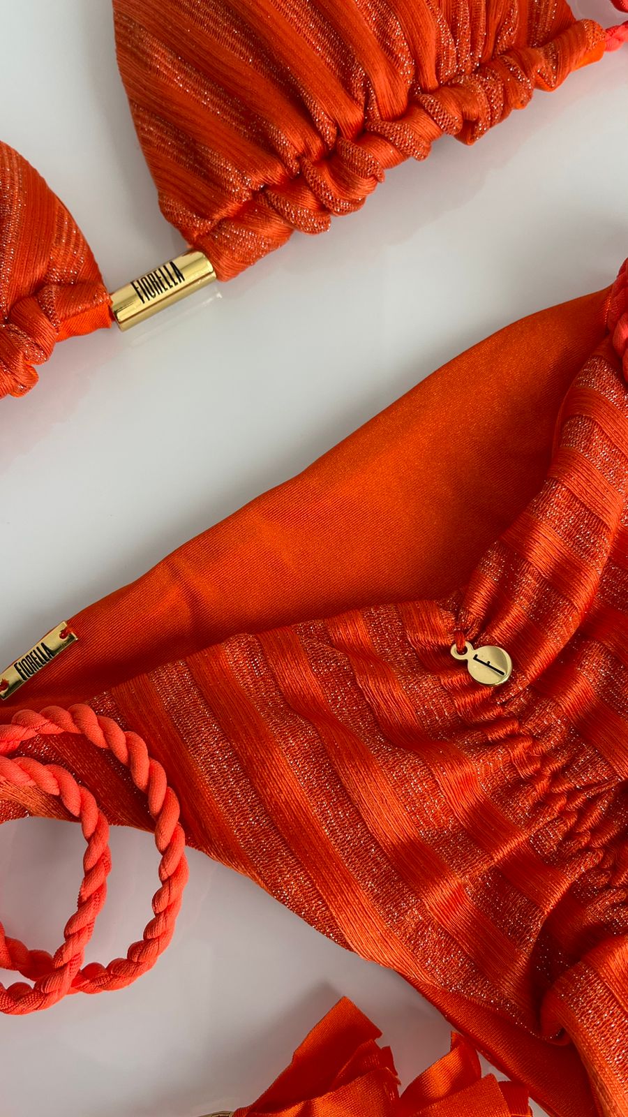 O biquíni cortininha é a paixão das mulheres brasileiras, ele é simples e lindo, possui uma modelagem clean e versátil que garante uma marquinha de sol impecável, podendo ser ajustado para uma marquinha menor ou maior, de acordo com o gosto individual de cada mulher. Nosso biquíni com bojo impermeável de altíssima qualidade, são maleáveis, laváveis e não absorvem água, e o melhor, não quebram. As cortininhas possuem costura interna, ou seja, o elástico da peça não aparece no lado do forro, esta costura dá maior conforto ao vestir e se movimentar, uma vez que o elástico e a costura que poderiam ofuscar o toque macio do tecido ficam internos e não expostos diretamente à pele. A modelagem foi elaborada para atender o corpo da mulher brasileira, garantindo conforto, modernidade e jovialidade.