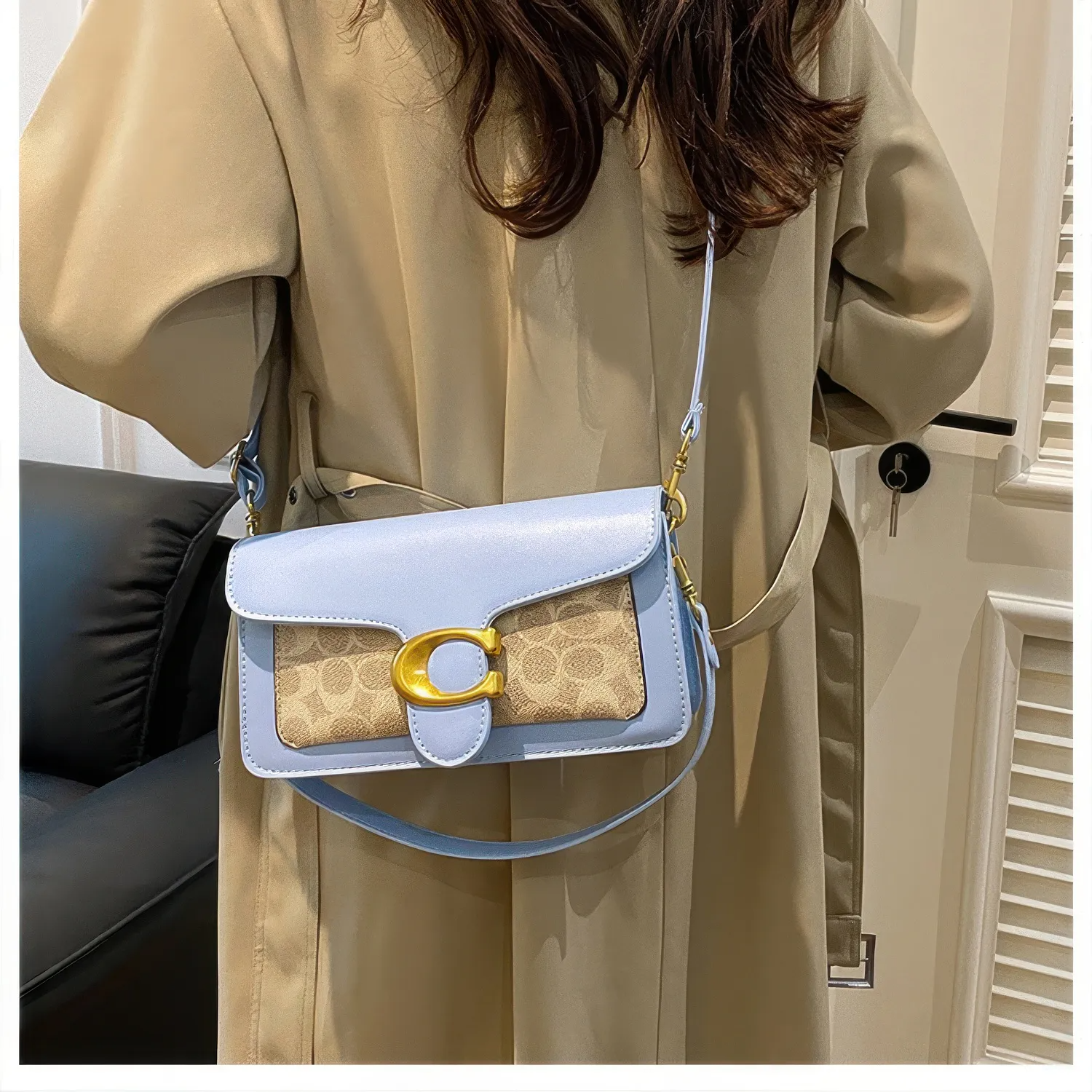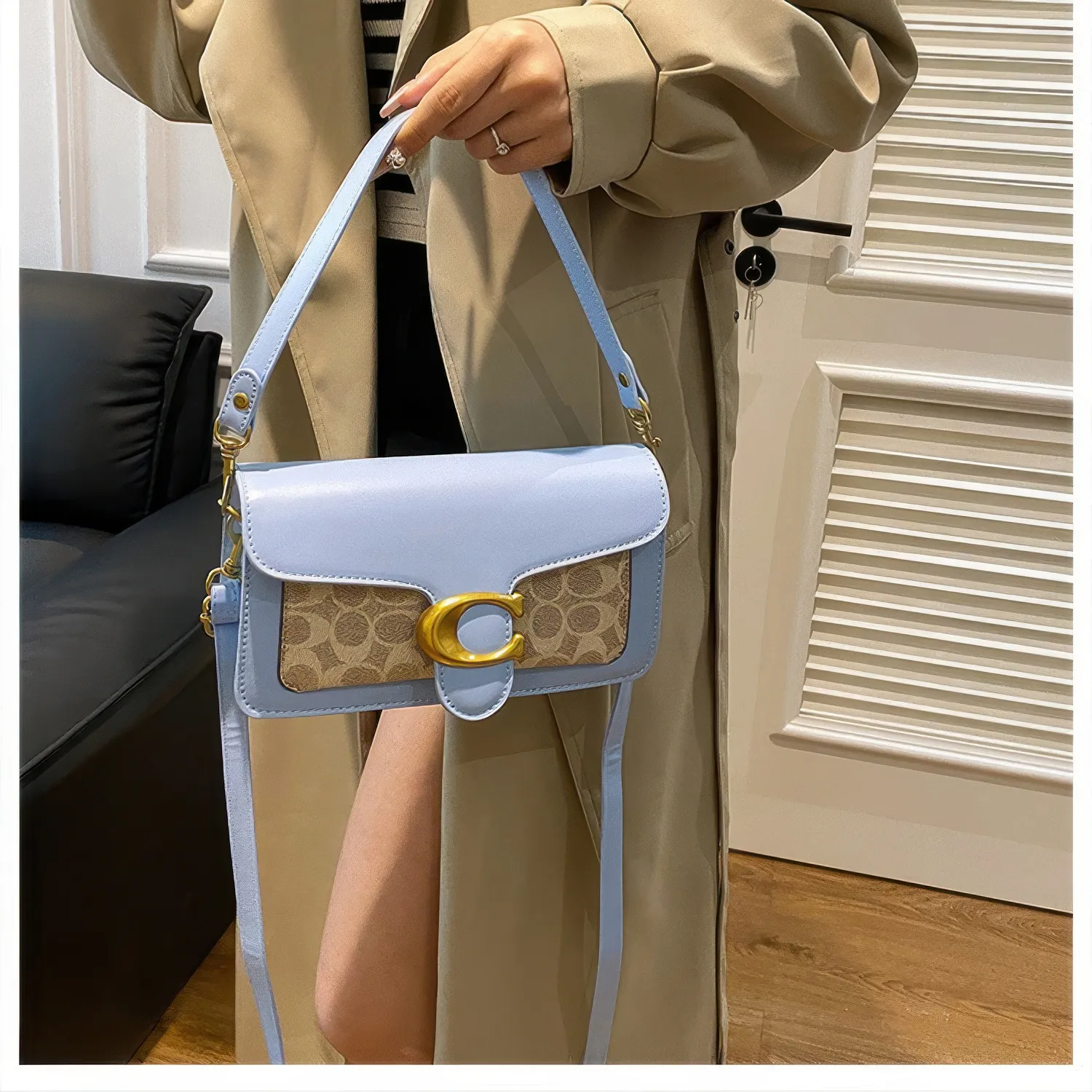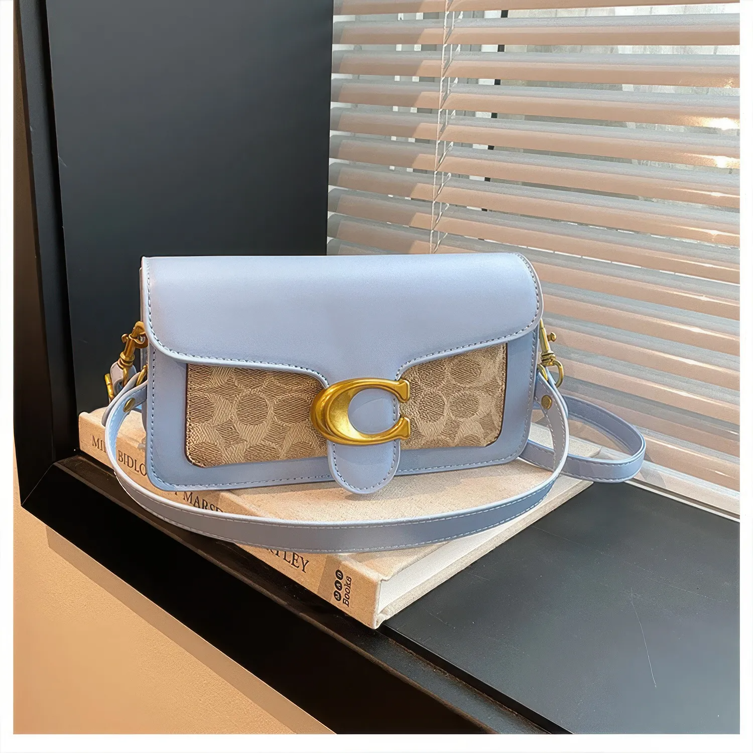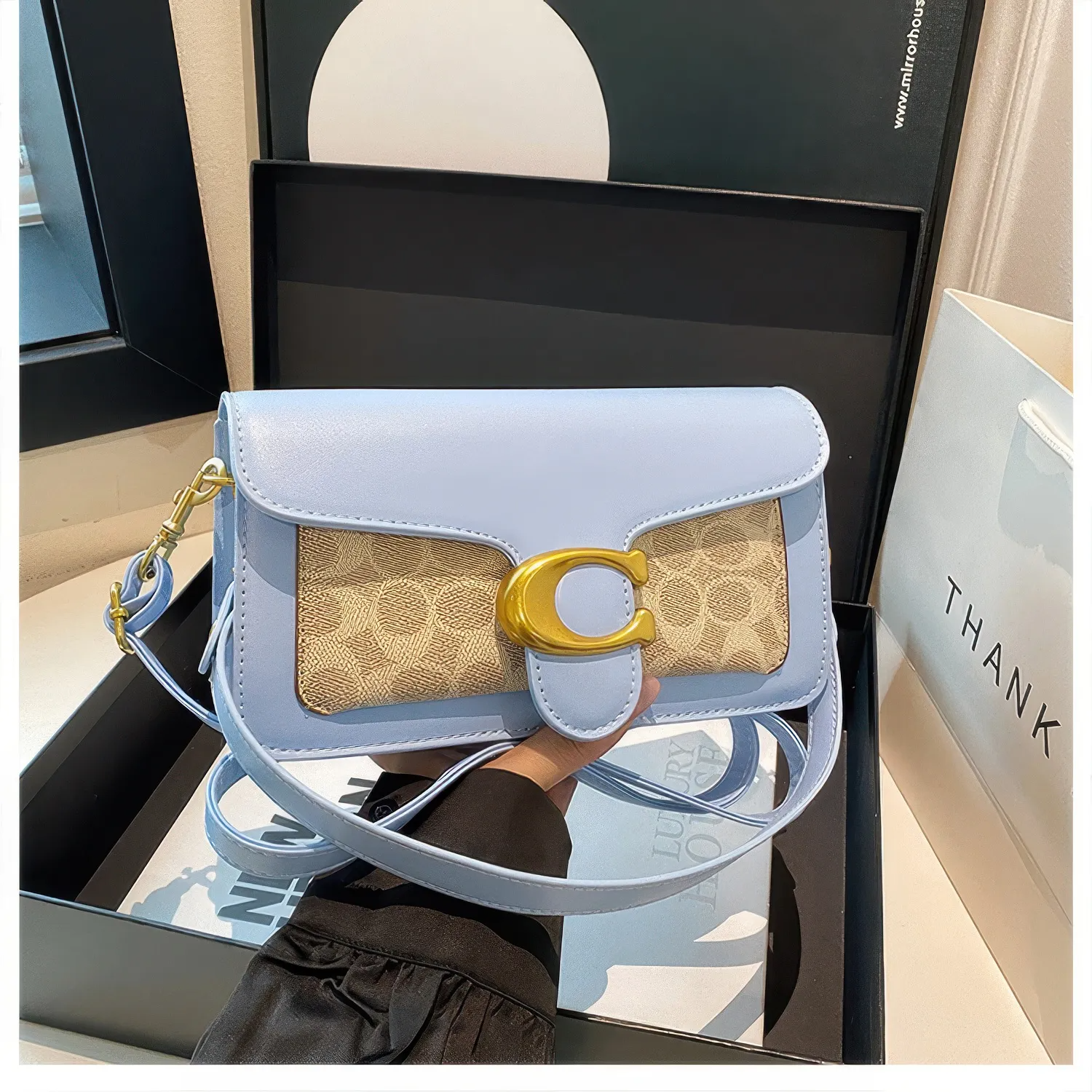 A Bolsa Coach Tabby Shoulder azul claro combina elegância e leveza em um design moderno. O contraste entre o couro liso e o monograma clássico valoriza a peça com personalidade. Finalizada com o fecho dourado em “C”, é perfeita para compor looks sofisticados com delicadeza.