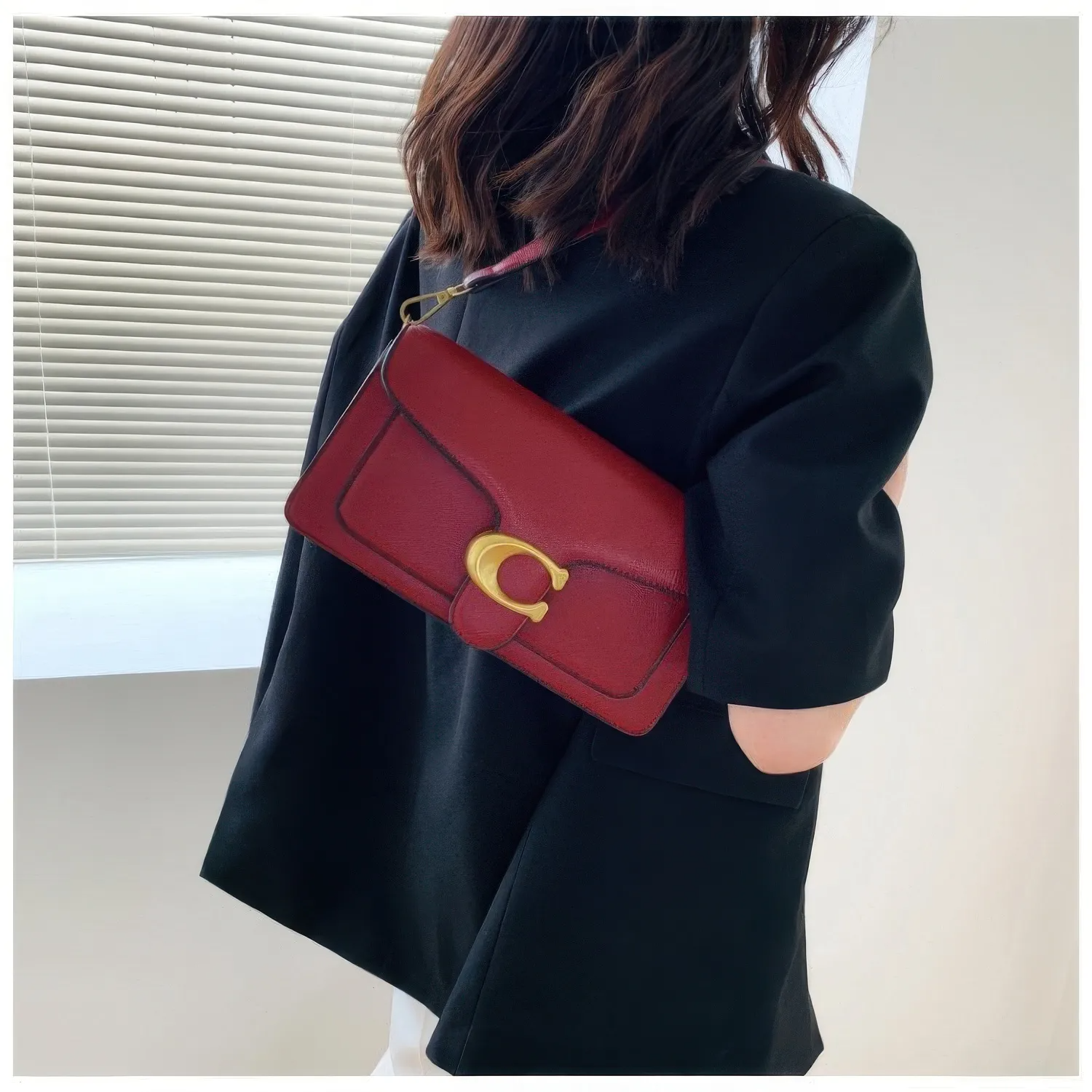 A Bolsa Coach Tabby Shoulder vermelha é intensa e sofisticada, perfeita pra quem gosta de marcar presença com elegância. O couro texturizado valoriza o tom vibrante, enquanto o fecho dourado em “C” adiciona um toque clássico e poderoso ao visual.