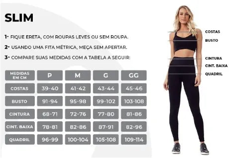 MEDIDAS DA MODELO: 1.70CM DE ALTURA, 95CM DE BUSTO, 64CM DE CINTURA, 100CM DE QUADRIL, 56CM DE COXA.