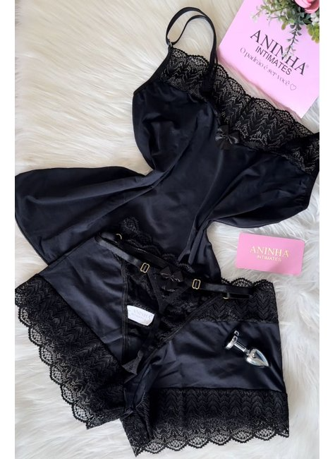 KIT Baby Doll + 2 Calcinhas Anita + Plug - Preto