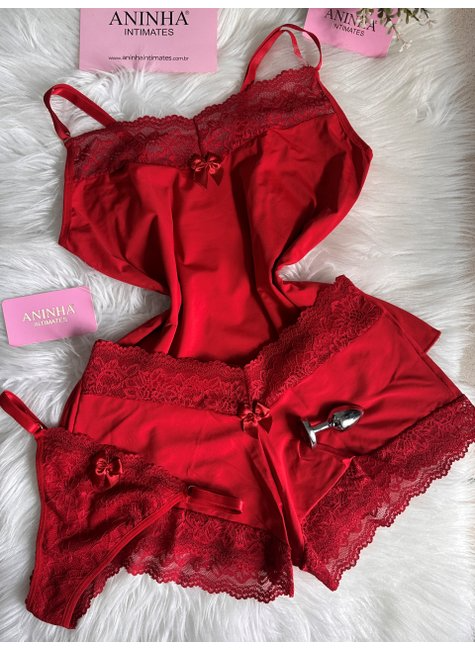KIT Baby Doll + Calcinha + Plug - Vermelho