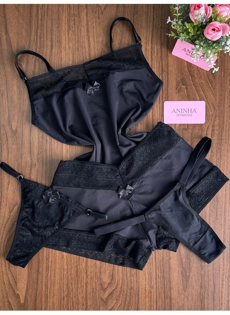 KIT Baby Doll Color + 2 Calcinhas de Brinde - Preto