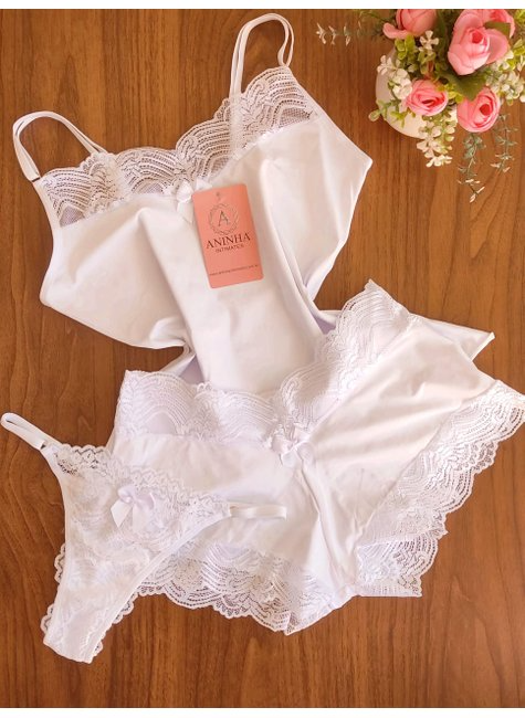 KIT Baby Doll Color Branco + 2 Calcinhas de Brinde