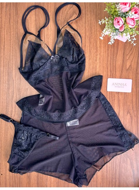 Feito em tule, tecido transparente e macio, deixa sua noite sensual e confortável, blusa com renda francesa e short com fenda lateral e com mesma composição. Renda francesa de alta qualidade. Esse conjunto realça a sua sensualidade, deixando você mais bela e sexy ao mesmo tempo.🥰